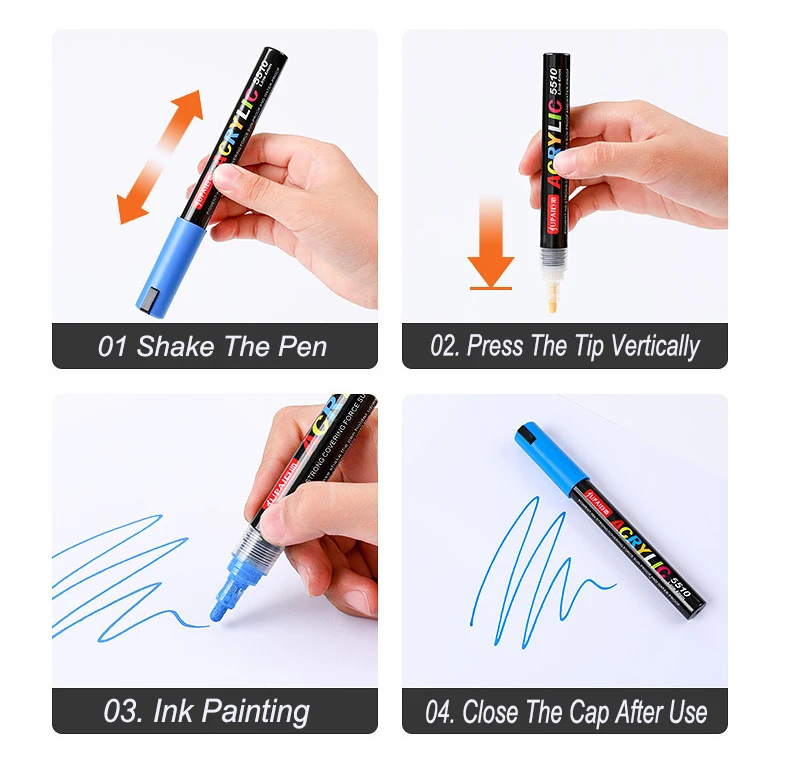 ●Acrylic marker pen, color art can be created at will; high-quality acrylic marker pen, fast drying, light fast, strong coverage, bright colors