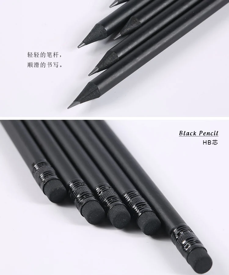 10pcs Black Wood Pencils HB 2B High Quality Customized Pencil Pre-sharpened Eraser Top for Choose School Office Supplies